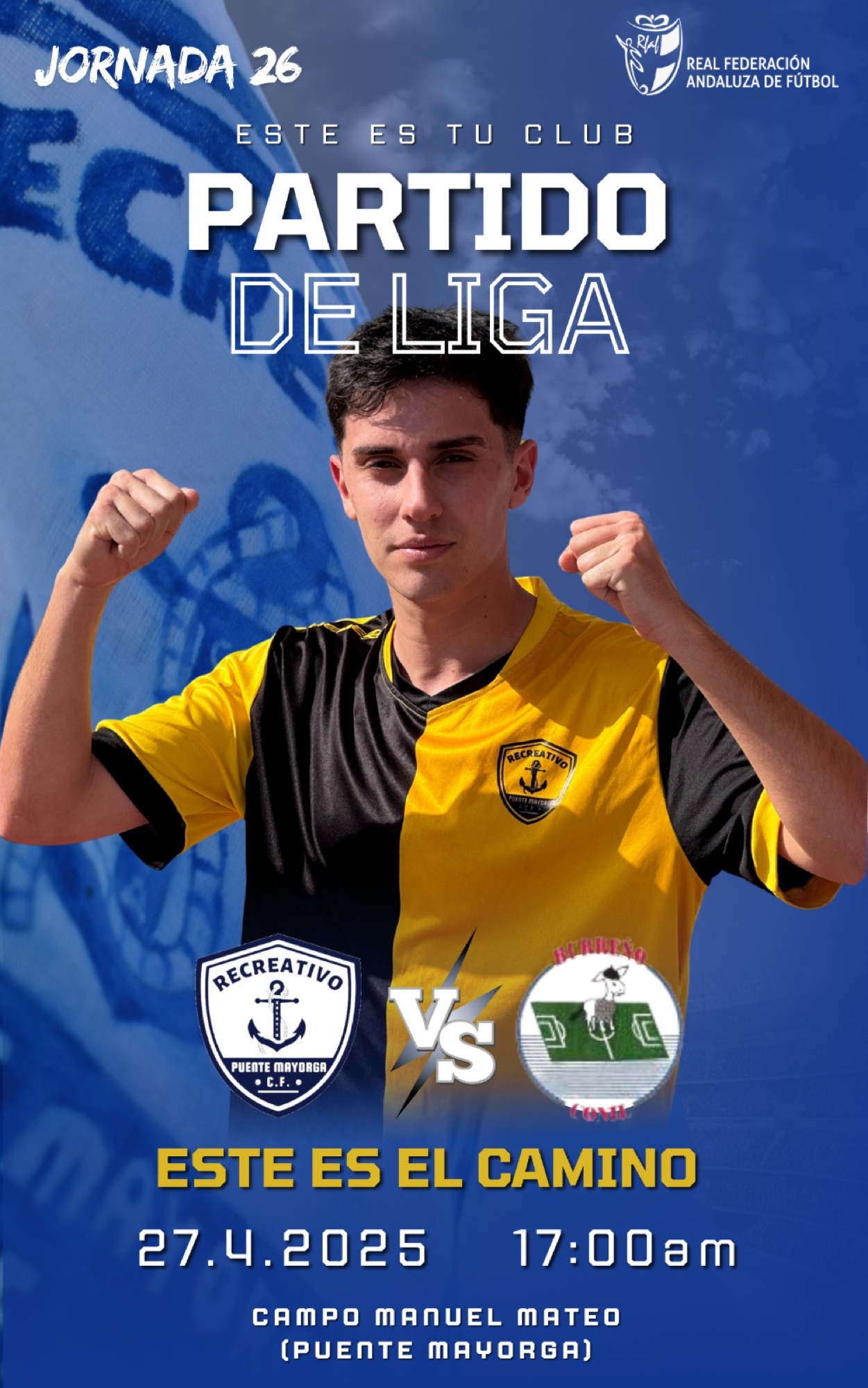 El Recreativo Puente Mayorga se enfrenta en casa este domingo al Burreños AD en el partido correspondiente a la jornada 26 de Tercera Andaluza Cádiz grupo 2. Se trata del último encuentro de la liga regular, en la que los sanroqueños marchan octavos y los de Conil van quintos, ambos en la zona media y sin jugarse nada trascendente.