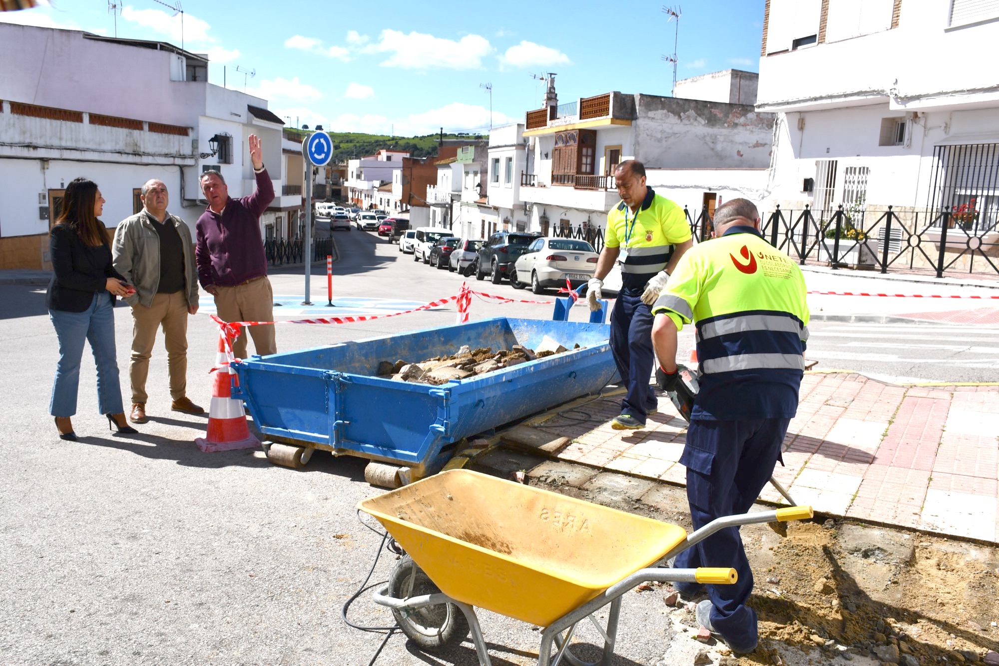 La teniente de alcalde delegada de Obras y Servicios, Belén Jiménez, y el teniente de alcalde de Estación, Taraguilla y Miraflores, Juan Serván, se han desplazado a la calle Barrio Alto de la Estación, donde personal del departamento de Infraestructuras y Obras está procediendo a la reposición del acerado.