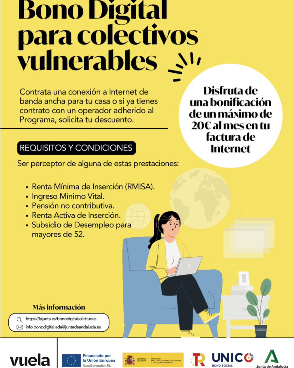 Más información: https://lajunta.es/bonodigitalsolicitudes o enviando un correo a info.bonodigital.ada@juntadeandalucia.es