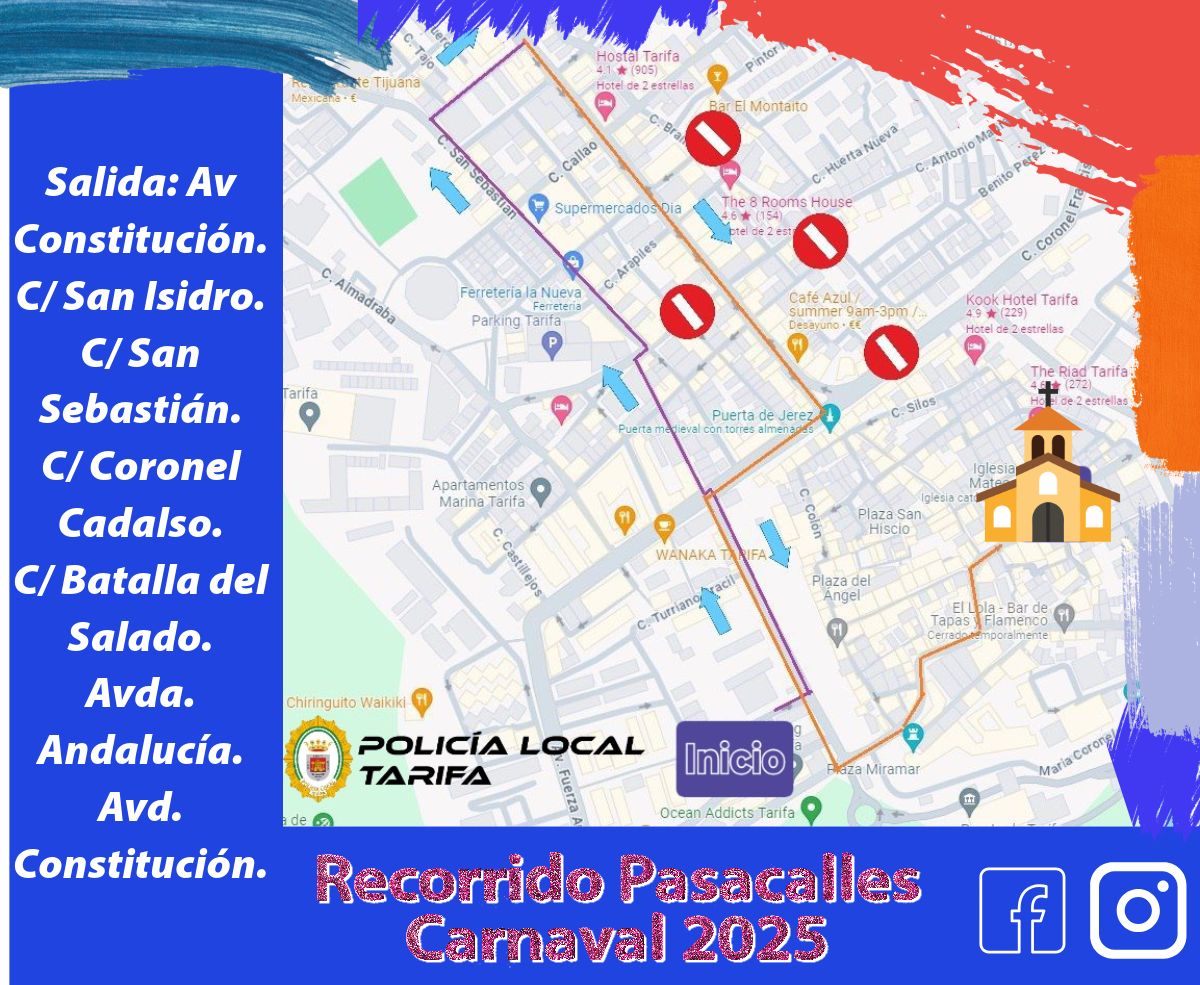 Tarifa vivirá esta tarde uno de los momentos más esperados del Carnaval 2025 con el Gran Pasacalles, que recorrerá las principales calles de la localidad. La cita será este sábado 15 de marzo a las 17:00 horas, con salida desde el CEIP Guzmán el Bueno.