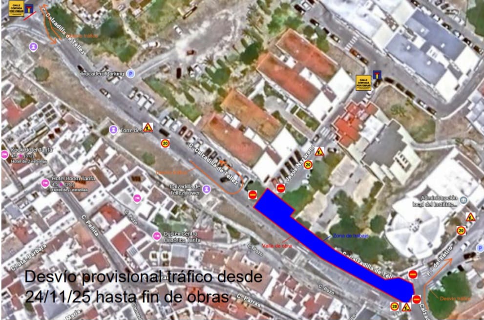 Tarifa anuncia cortes de tráfico en varias calles este lunes por obras de mejora de la red de abastecimiento