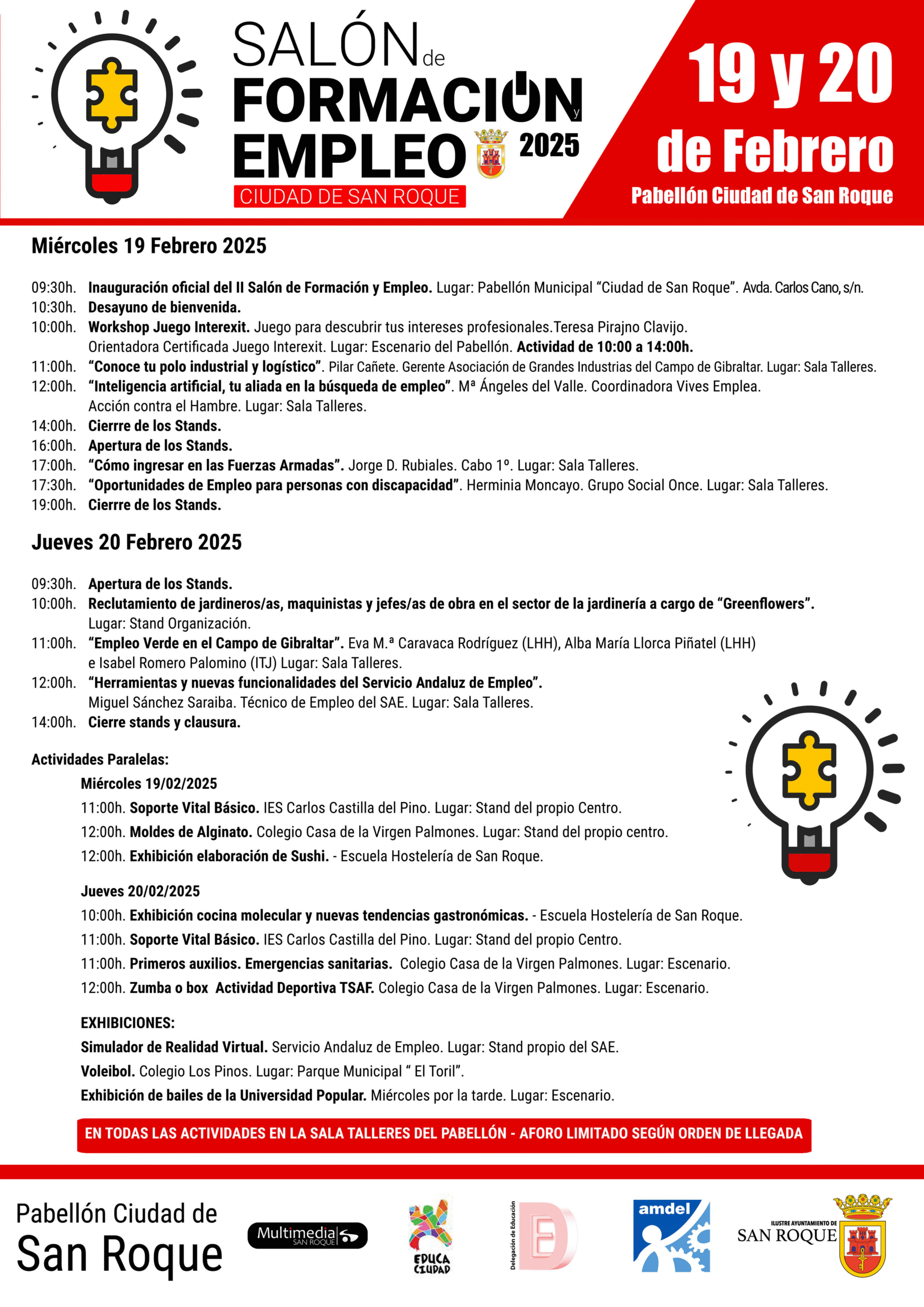 Apuntó el responsable de Empleo que “es una actividad que puede cambiar la vida”, como le puede ocurrir a los estudiantes que gracias a este salón encuentren una vocación o a las personas que, por poder entregar su curriculum de forma física, consigan un trabajo. Apuntó que “aquí estarán las principales empresas de la comarca, así como entidades educativas a nivel provincial, y además tendremos actividades como una jornada de reclutamiento de personal por parte de una empresa de jardinería sanroqueña”.