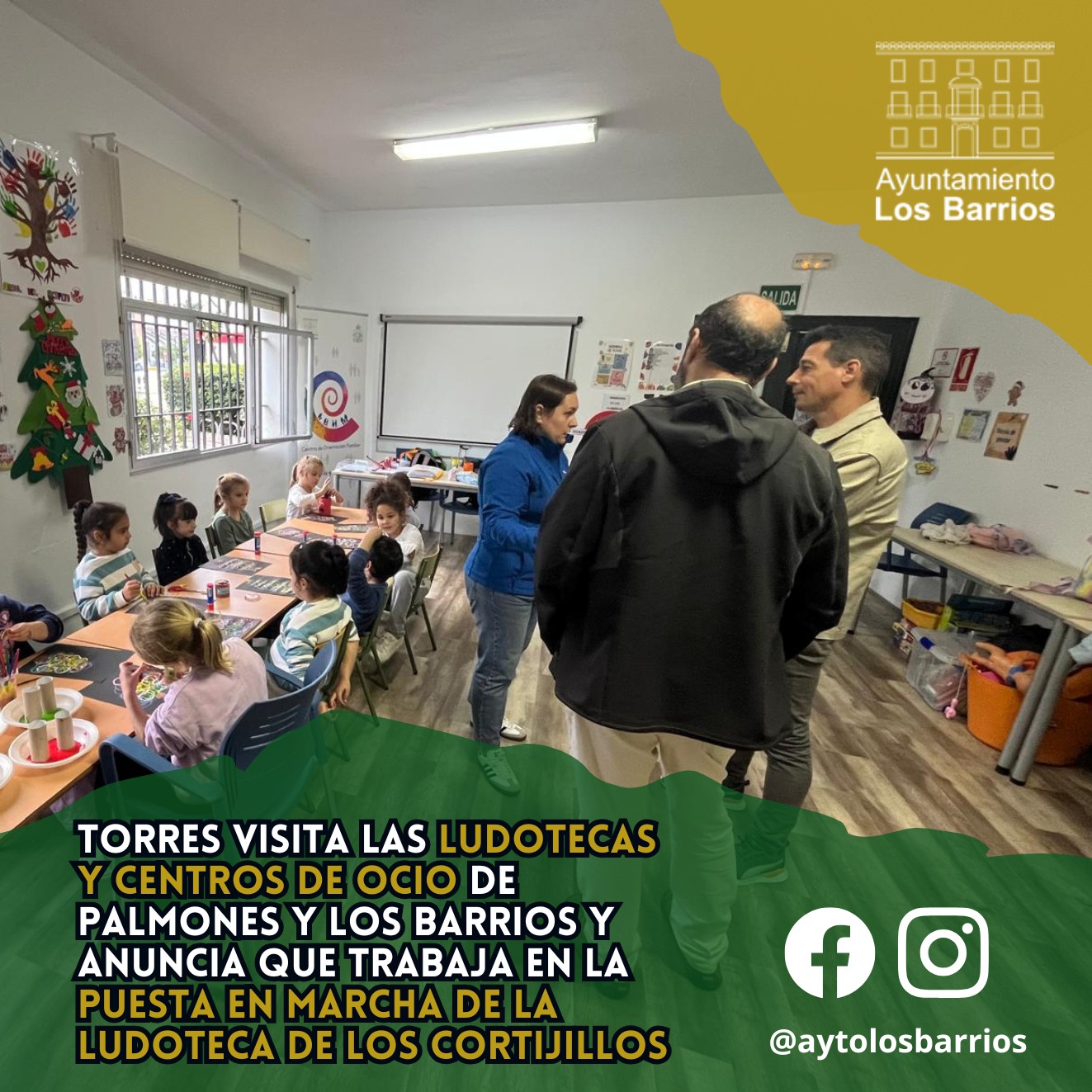 El delegado de Servicios Sociales, Carlos Torres, ha visitado las ludotecas municipales y los centros de ocio de ‘El Callejón’ en Los Barrios y ‘Primera Planta’ en Palmones y ha anunciado que ya se está trabajando para poner en marcha la ludoteca de Los Cortijillos.