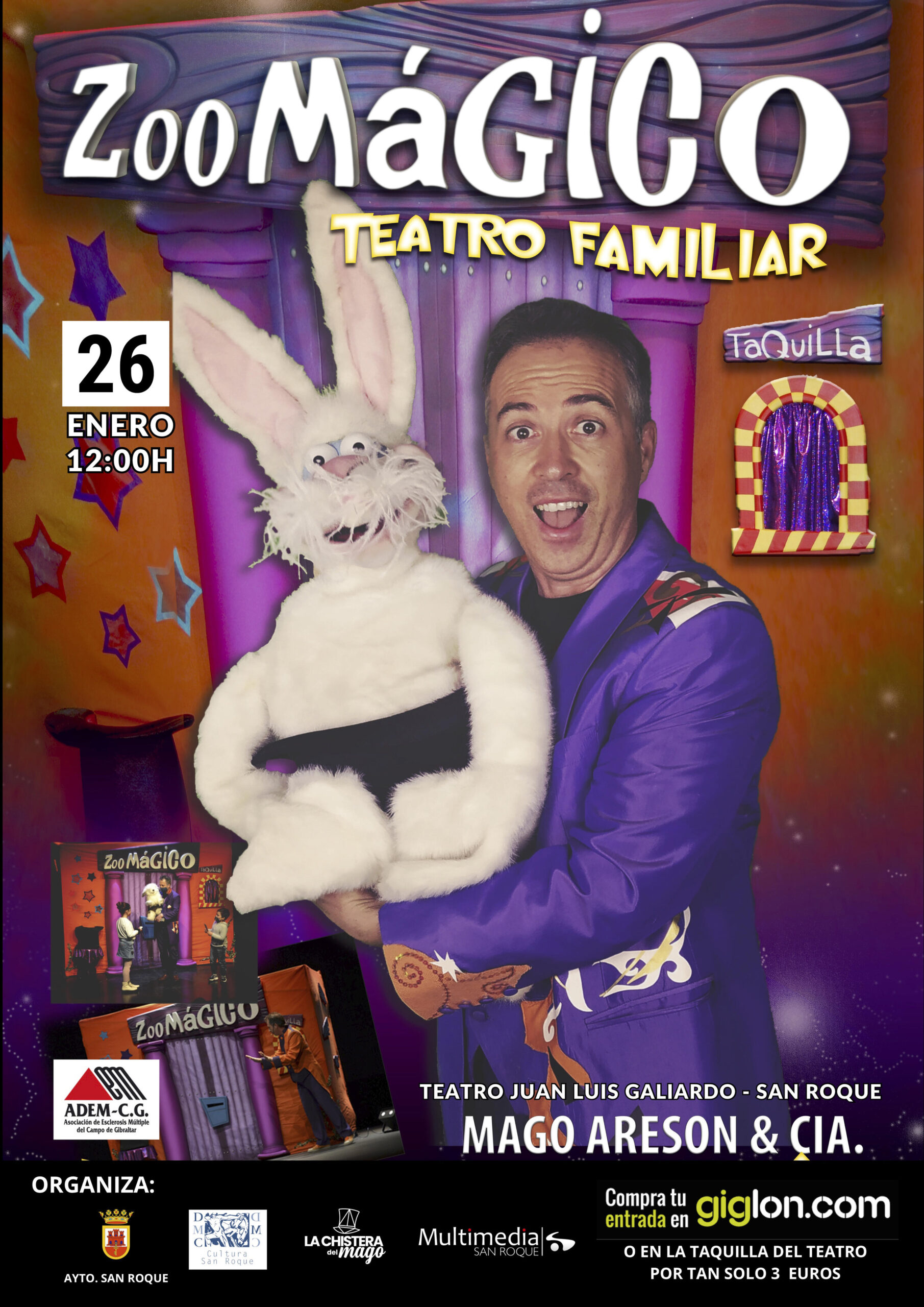 El San Roque Magic Fest finalizará el domingo 26 de enero a mediodía, con el espectáculo familiar “Zoo Mágico”, a cargo del Mago Áreson, quien combina magia, bailes y ventriloquía. Este ilusionista sevillano ha ganado varios premios internacionales y es campeón de España en las categorías de Invención y Grandes Ilusiones.