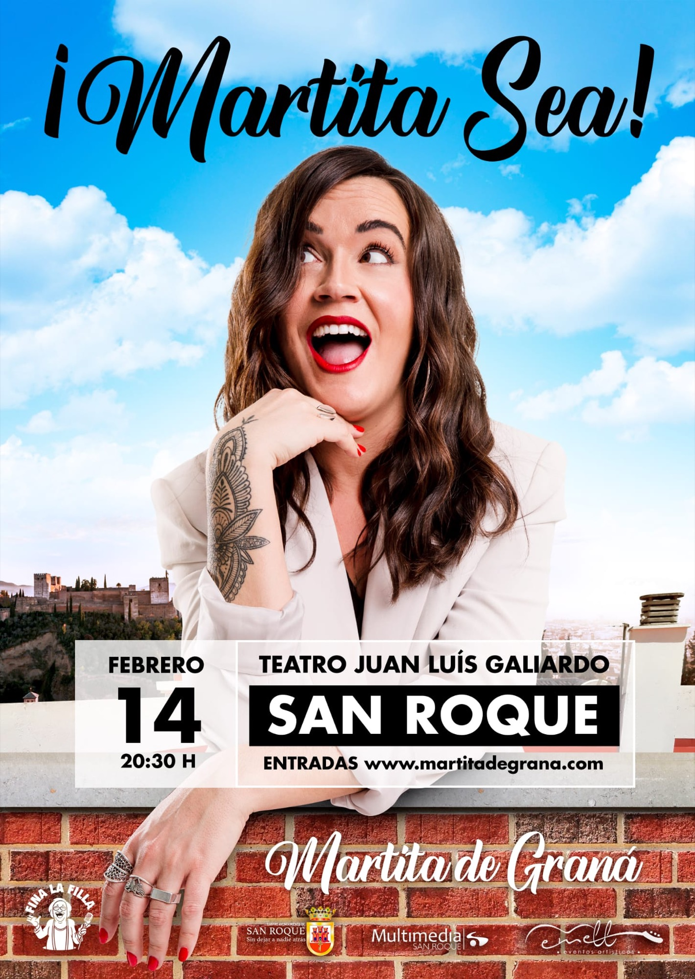 La Delegación de Cultura del Ayuntamiento de San Roque, que dirige la teniente de alcalde Ana Ruiz, organiza la representación este viernes, 14 de febrero y a partir de las 20.30 horas, del espectáculo “¡Martita sea!” en el Teatro Juan Luis Galiardo. Se trata de la última propuesta de Martita de Graná, una de las cómicas más influyentes en estos momentos en España.