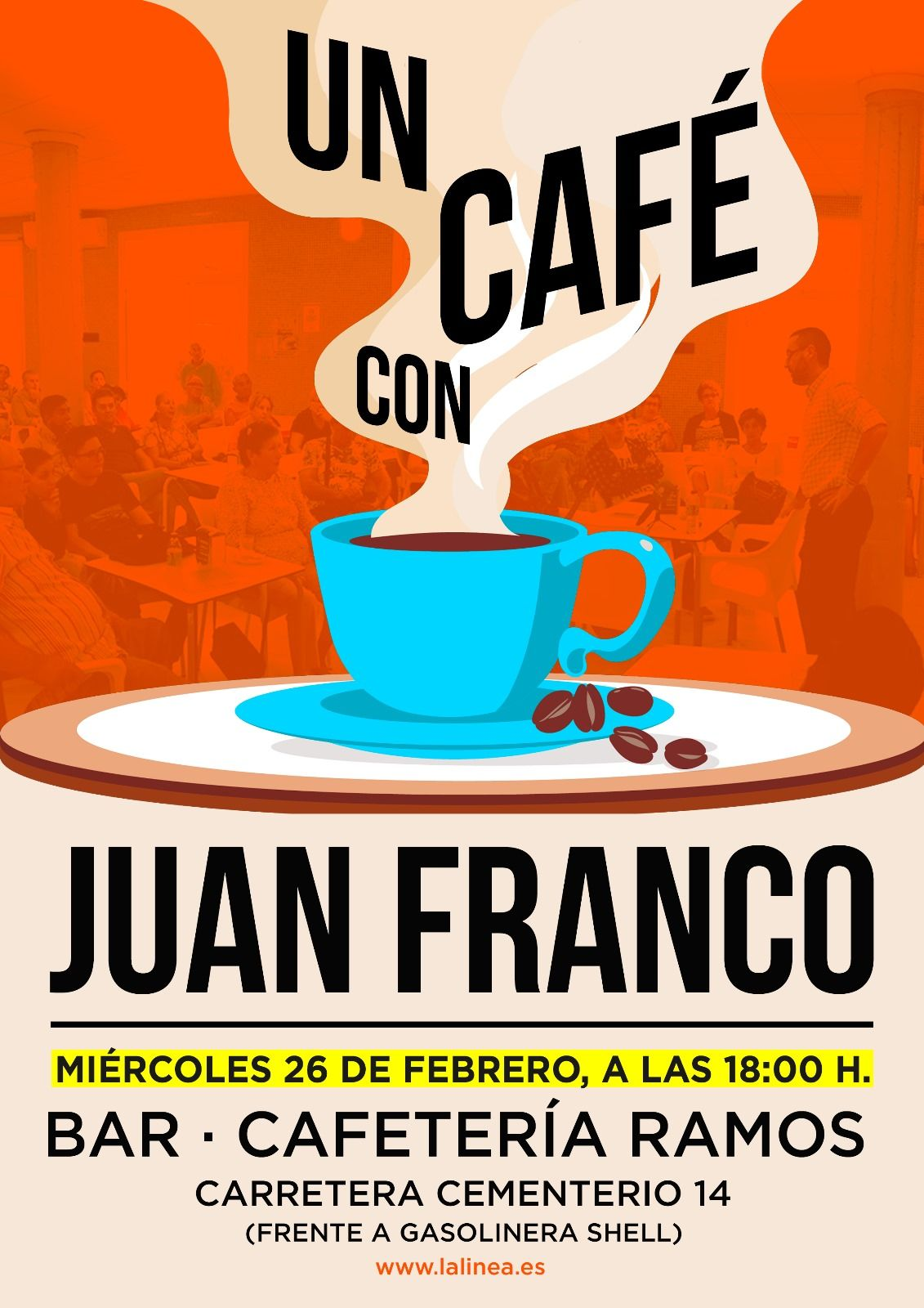 El próximo miércoles, 26 de febrero, el alcalde de La Línea de la Concepción retoma la iniciativa ‘Un café con Juan Franco’. En esta ocasión, la cita será en el área del Zabal bajo, concretamente, en el bar cafetería Ramos, ubicado en la carretera del cementerio.