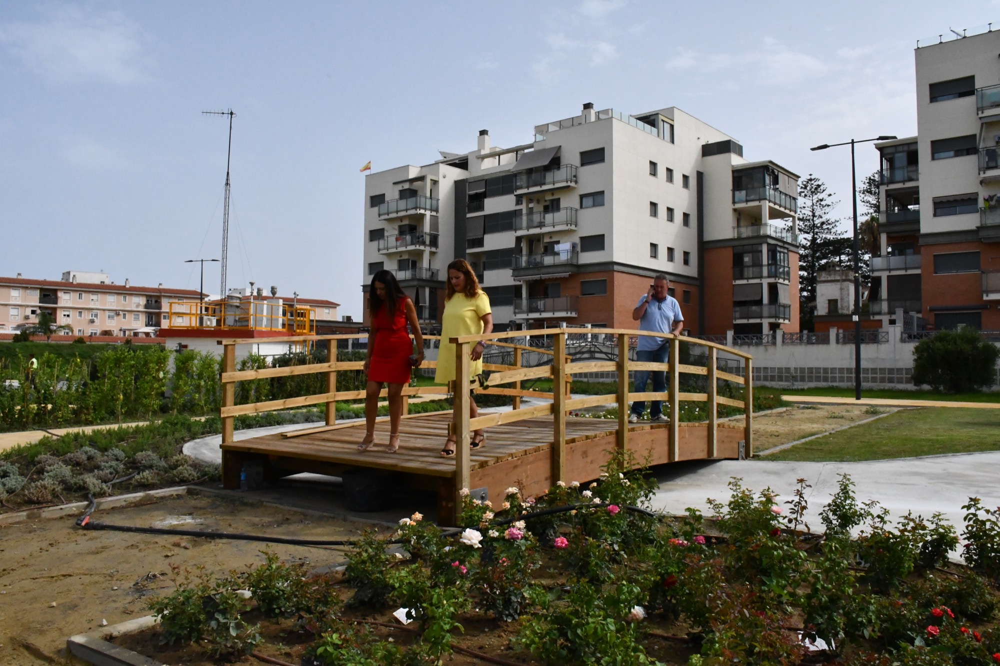 La teniente de alcalde de Obras y Servicios, Belén Jiménez, y la delegada responsable de la zona de la Bahía, Mónica Córdoba, han supervisado el avance de las obras del parque temático Villa Victoria, ubicado entre Puente Mayorga y Campamento, que ya presenta parte de sus zonas ajardinadas y elementos del proyecto prácticamente concluidos.