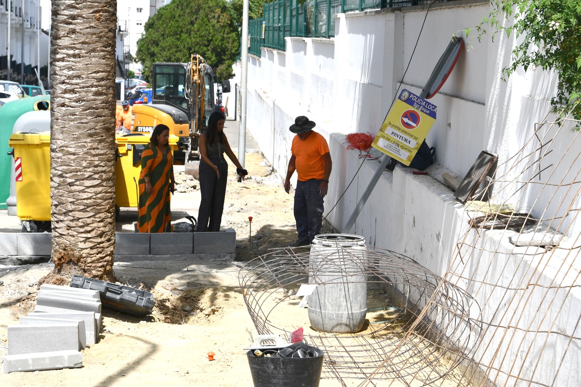 La teniente alcalde de Obras y Servicios, Belén Jiménez, junto a la teniente alcalde de San Roque Casco, María del Mar Collado, han visitado en la mañana de este miércoles las obras de construcción de un nuevo acerado en la calle Federico García Lorca, en Los Olivillos.