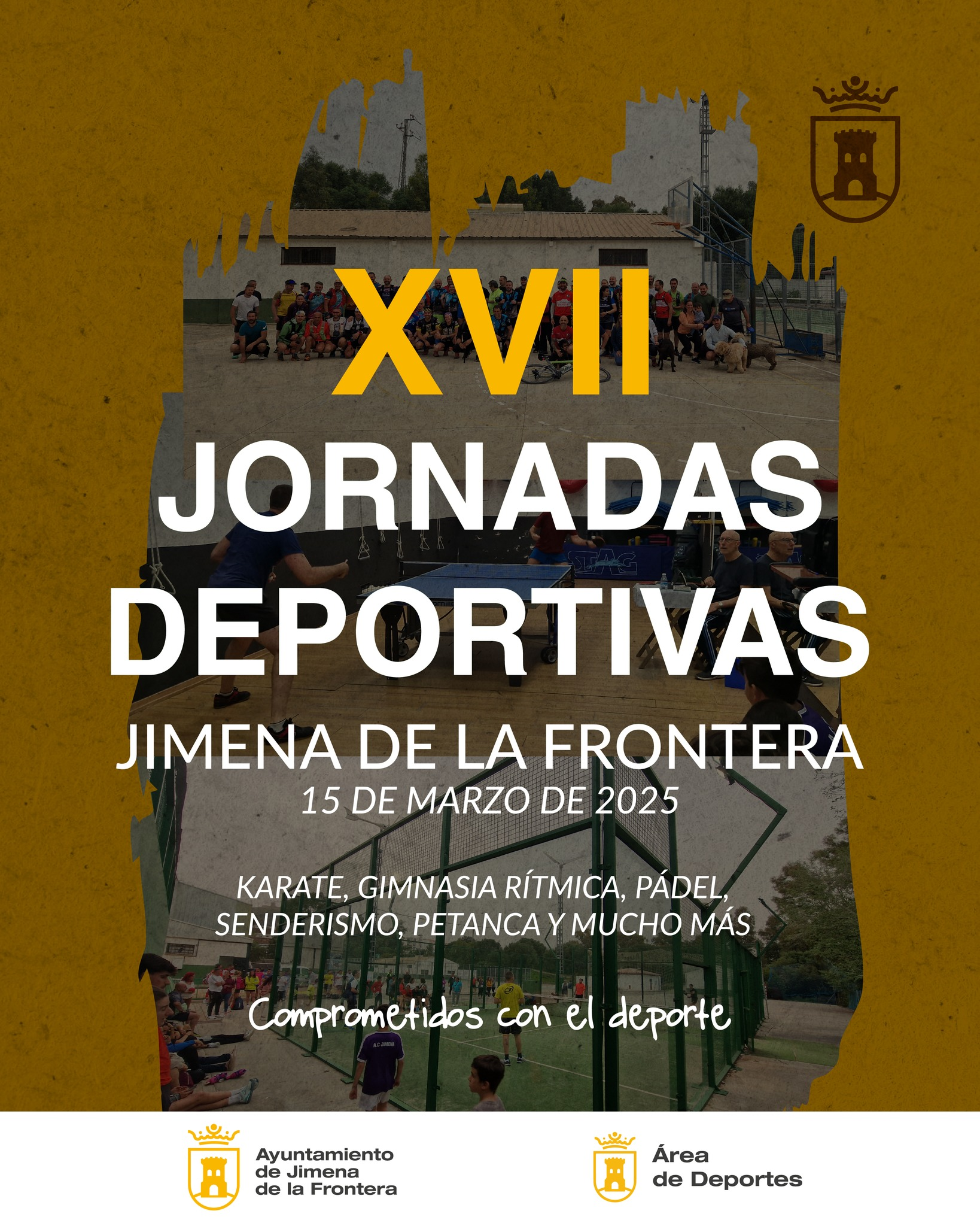 El próximo sábado 15 de marzo de 2025, el Área de Deportes del Ayuntamiento de Jimena de la Frontera celebrará las XVII Jornadas Deportivas que tendrán lugar en el Pabellón Municipal de Deportes de Jimena de la Frontera, donde se concentran las asociaciones y clubes deportivos del municipio.